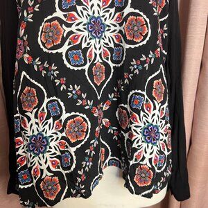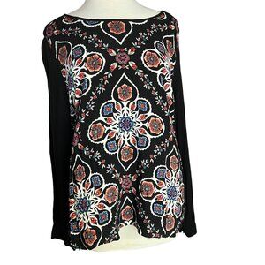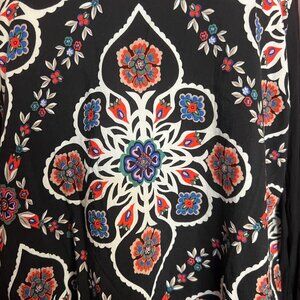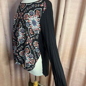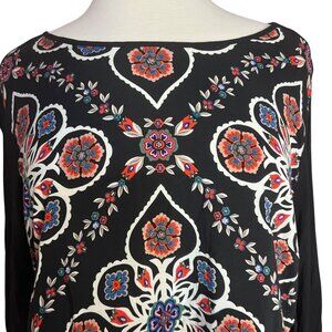 Old Navy Women Long Sleeve Blouse Folk Art Print Large 100% Rayon Office Casual