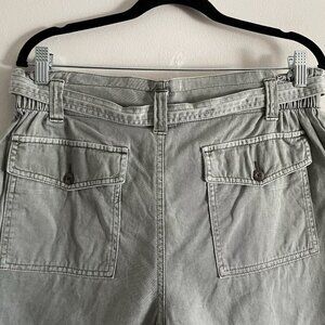 Old Navy Women M Green Casual Pockets Belted High-Waisted Twill Workwear Shorts.