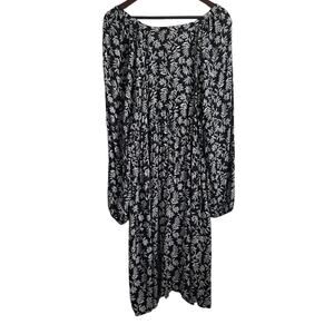 Old Navy Women Maternity Rayon Dress High Waist 2X Black Foliage Print Flowy