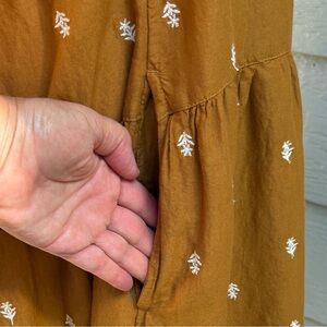 Old Navy Women Milkmaid Mini Dress Tiered Dainty Floral Embroidery Mustard sz 2X