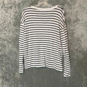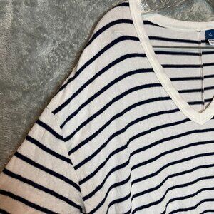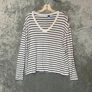 Old Navy Women Nautical Preppy Oversized Cozy Knit Navy Blue Striped Shirt S
