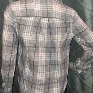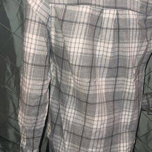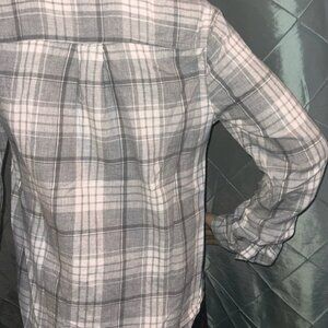 Old Navy Women Small Classic Plaid Grey White Button Up Long Sleeve Shirt (GS3)