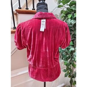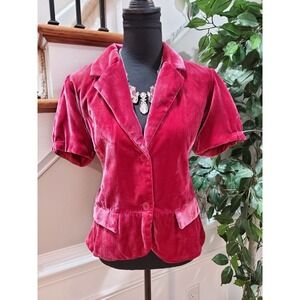 Old Navy Women Solid Red Viscose Short Sleeve Buttons Front Casual Jacket Size L.