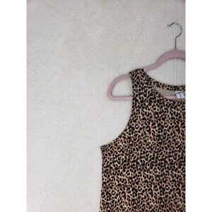 Old Navy Women Top Large Brown Cheetah Print Rayon Blend Sleeveless Tank Shirt