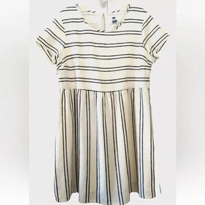 Old Navy Women White Striped Short Pullover Lined Linen Blend Dress XS nautical