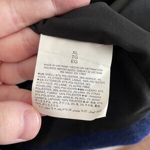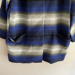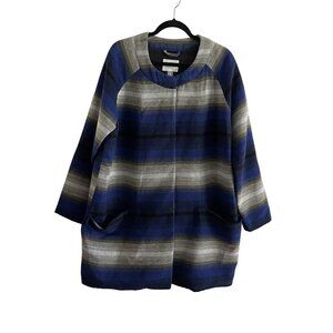 Old Navy Women XL Blue Striped Wool Blend Collarless Longline Blanket Coat.