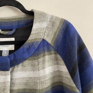 Old Navy Women XL Blue Striped Wool Blend Collarless Longline Blanket Coat NWT