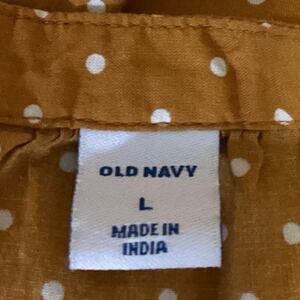 Old Navy Women Yellow Polka Dot Short Sleeve Band Collared Button Up Shirt Top L