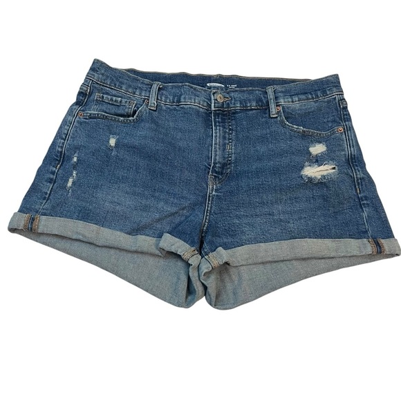 Old Navy Women's 18 Plus O.G. High Rise Denim Shorts Distressed Rolled Cuff