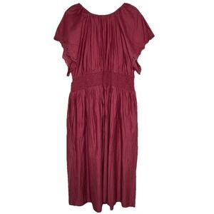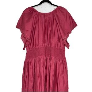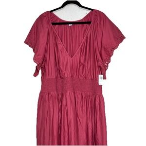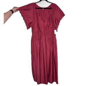 Old Navy Womens 2X MauveRose Waist Defined Flutter Sleeve Smocked Midi Dress NEW