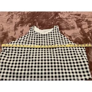 This is an Old Navy women's active tank top in size 4XL plus, designed with a gingham pattern and a high neckline. It features wide straps, a cropped style, and is suitable for activewear. The crop top includes a built-in bra for chest compression and is made with stretch fabric for comfort during sports activities.