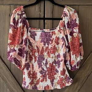 Old Navy Women's Autumn Leaves Floral Fitted Puff-Sleeve Smocked Top Size M NWOT