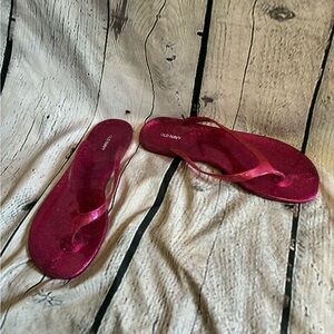 Old Navy Women’s Barbie Pink Glitter Swim Sandals Flip Flops Pool Shoes Size 8