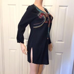 Old Navy Womens Black Embroidered Peasant Swimsuit Cover Up Top Size Medium.
