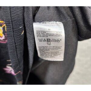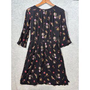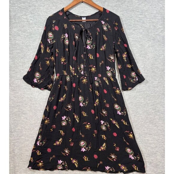 Old Navy Womens Black Floral Midi Dress M Bell Sleeve Swing