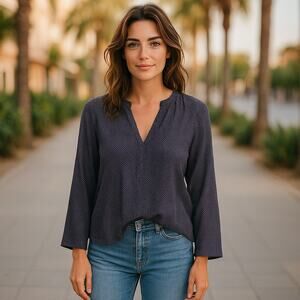 Old Navy Womens Blouse Size XS Popover Polka Dot Blue Tan NEW