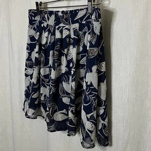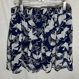 Old Navy Women's Blue, White, Tan, Wine & Olive Green Bird Pattern Sheer Pull On Circle, Skater Mini Skirt S