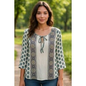 Old Navy Women’s Boho Peasant Festival Hippie Bohemian Chic Sheer Flowy Blouse L