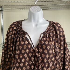Old Navy Women’s Brown Floral Boho Peasant Midi Dress Size L Hippie Festival