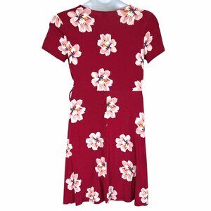 Old Navy Womens Burgundy Floral Faux Wrap Dress L Short-Sleeve V-Neck Soft Knit