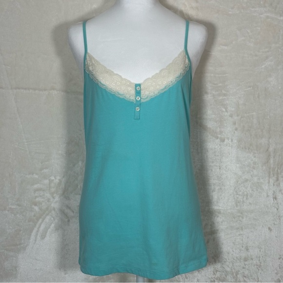 Old Navy Womens Cami Lace Trim Tank Top Button Details sz L Teal Bella Swan Y2K