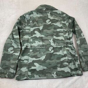 This Old Navy camouflage jacket is a testament to both style and utility, providing a versatile outer layer for a variety of settings. The drawstring waist allows for a customizable fit, while the zippered front ensures easy wear. The classic camo pattern adds a rugged, adventurous edge to any ensemble.