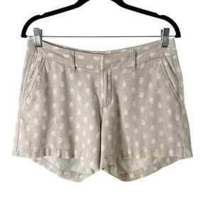Old Navy Women's Chino Shorts 6 Linen Blend Beige & White Paisley Print Summer