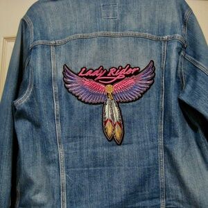 Old Navy Women’s Class Blue Jean Jacket Size 2X with Harley David emblems