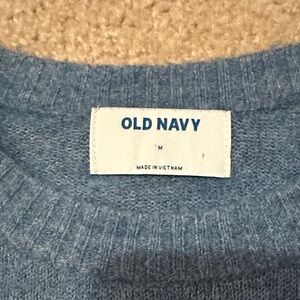 Stylish Old Navy crewneck sweater. Features a colorblock pattern in denim blue, royal blue, and navy. Super soft and stretchy. Only worn once. Size medium.