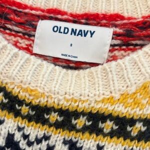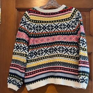 Icelandic, Norwegian Vibe on this very colourful old Navy sweater that looks like an elevated retro vibe sweater