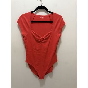 Old Navy Women's Coral Ribbed Bodysuit Size L – Short Sleeve Cotton Modal