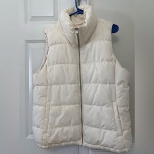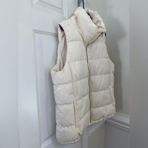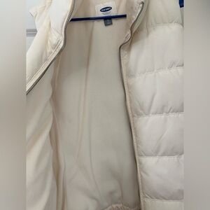 Old Navy Women’s Stylish cream puffer vest with a zip closure.