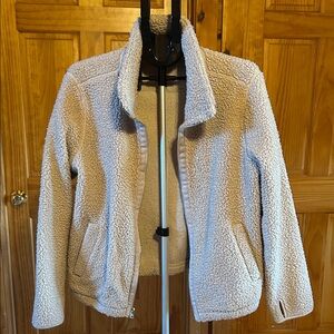 Old Navy Sherpa jacket in cream color, thumb holes and pockets, great gently used condition
