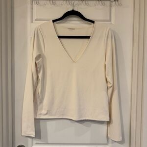 Elevate your wardrobe with this elegant cream V-neck top from Old Navy. Perfect for any occasion, this top offers both style and comfort. Double layered with material that could be considered workout attire or casual wear. NWOT