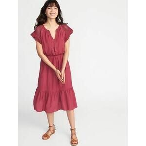 Old Navy Women’s Crochet-Sleeve Waist-Defined Midi Dress Tasseled
