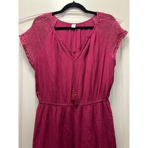 Old Navy Women’s Crochet-Sleeve Waist-Defined Midi Dress Tasseled Size L Purple
