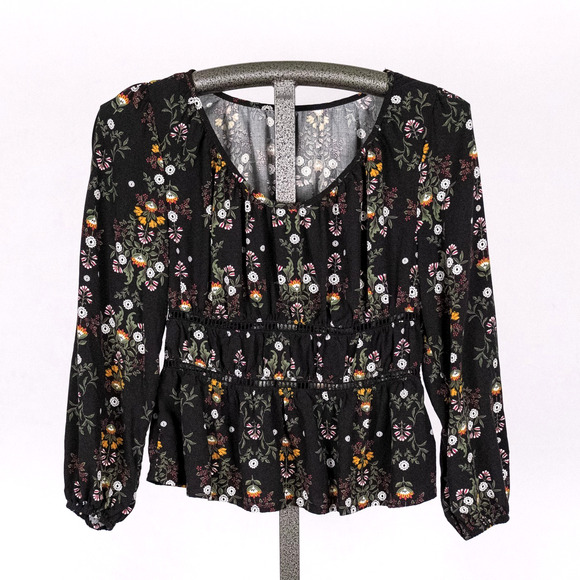 Old Navy Women's Dark Floral Peasant Top PETITE MEDIUM Milk Maid Cottage Fairy