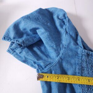 Old Navy Womens Denim Jumpsuit M Petite Blue Puff Sleeve Farmcore Cottagecore