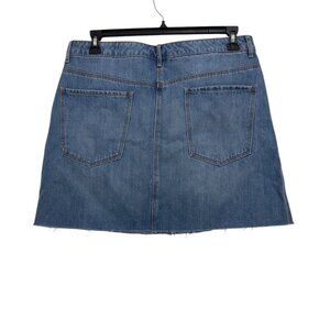 Old Navy Womens Denim Mini Skirt Size 14 Medium Wash Frayed Hem 100% Cotton