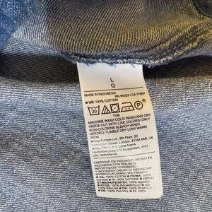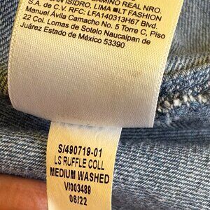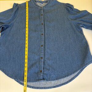 Old Navy Womens Denim Ruffle Collar Button Down Top Size Large Balloon Sleeves
