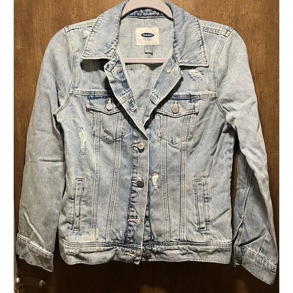Old Navy Women’s Destructed Denim Jacket Size Small Medium Worn
