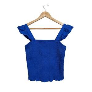 Old Navy Women's Sleeveless Embroidered Royal Blue Smocked Blouse Size Medium