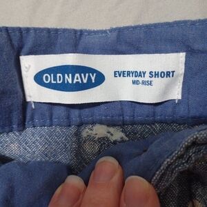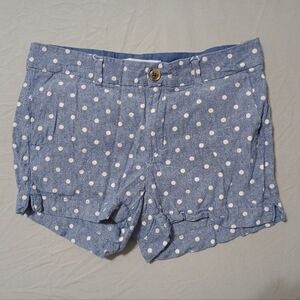 Old Navy Womens Everyday Midi Shorts Size 4 Blue Polka Dot Mid Rise Linen Blend