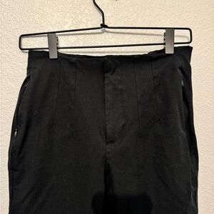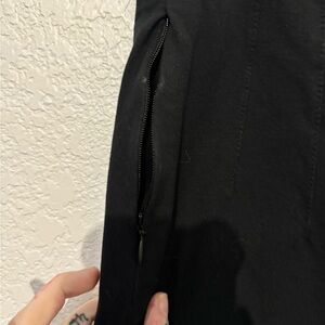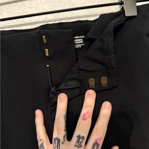 Stylish black business casual skinny pants. Ideal for any occasion. These have a tailored look. They have side pockets that zip up. Zipper and clasp closure.