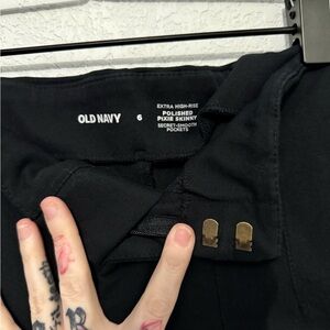 Old Navy Women's Extra High-Rise Polished Pixie Skinny Pants Black Soze 6