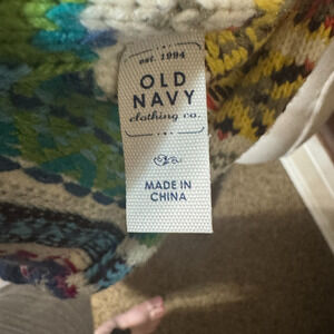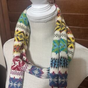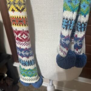 Old Navy Womens Fair Isle Multicolor Nordic Scarf Pom Pom colorful Fun knit