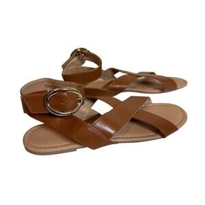 Old Navy Women's Faux Leather Cross Strap Buckle Sandals Size 10 Cognac NWOT