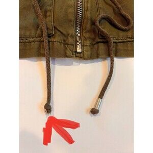 See flaw in picture, drawstring is missing one of the metal aglets. The silver buttons also show a little wear. Jacket is super cute and great condition other than those 2 small items.