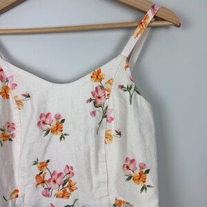 Details: Floral, smocked back, adjustable straps, ruffle detail on bottom hem