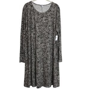Old Navy Women's Flare Dress Size XL Dark Animal Print Long Sleeve Rayon Spandex
